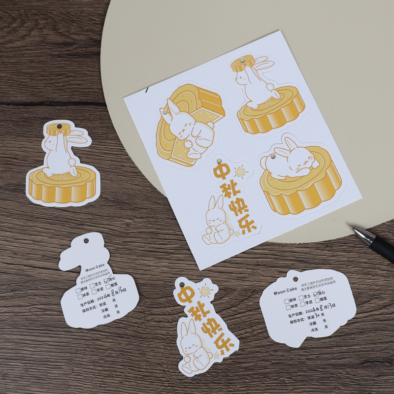 中秋節月餅包装提示カード装飾タグ生産日賞味期限味説明と小紙片