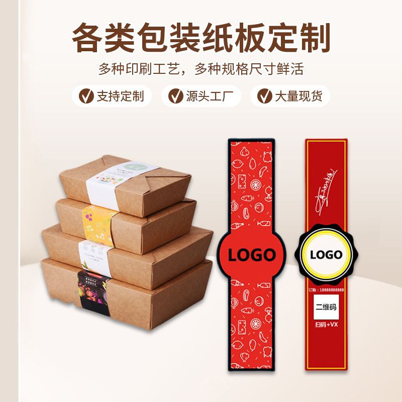 食品テイクアウト包装用ウエストシール、カスタム包装箱、使い捨てカードホルダー、シールストリップ、カスタム弁当箱、食品用ウエストシール