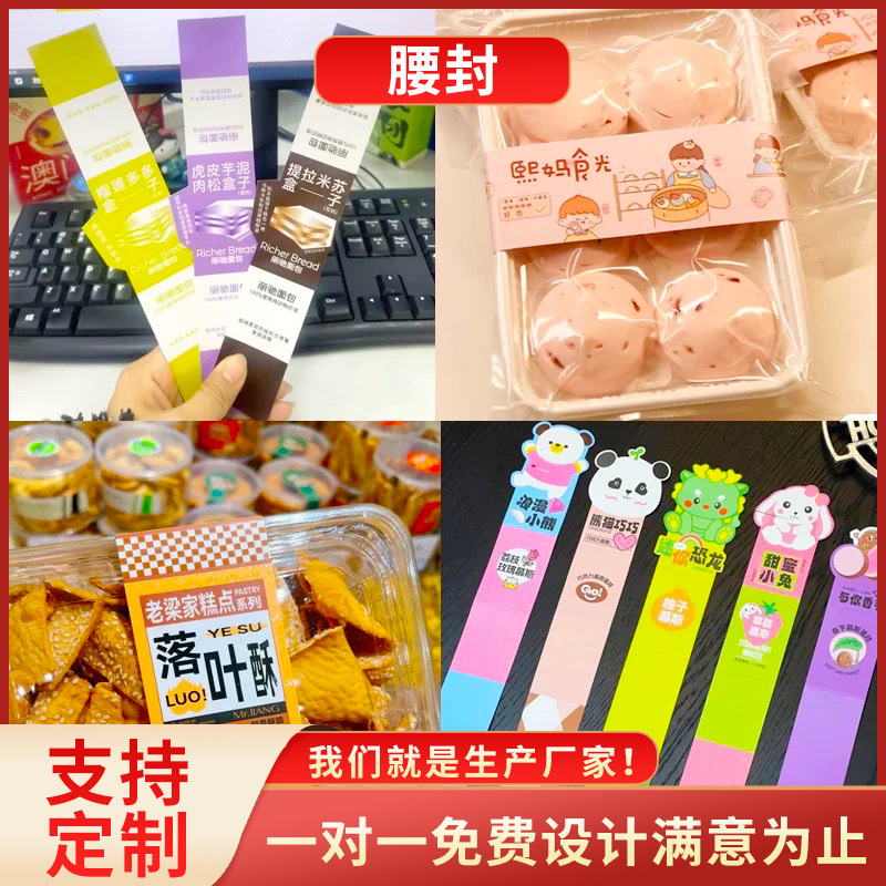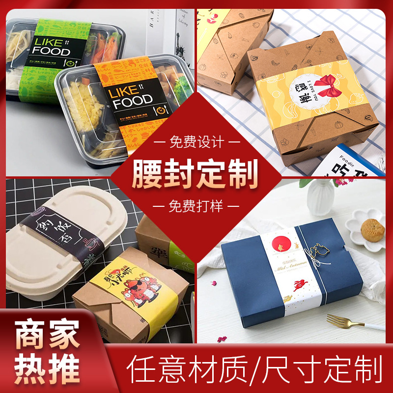 使い捨てランチボックスのウエストシールは、紙の靴下のウエストシールをカスタマイズしてシールを印刷します