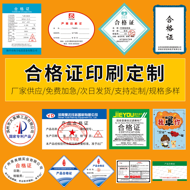 製品合格証カスタム食品合格証印刷設計説明書保証書メーカーカスタム