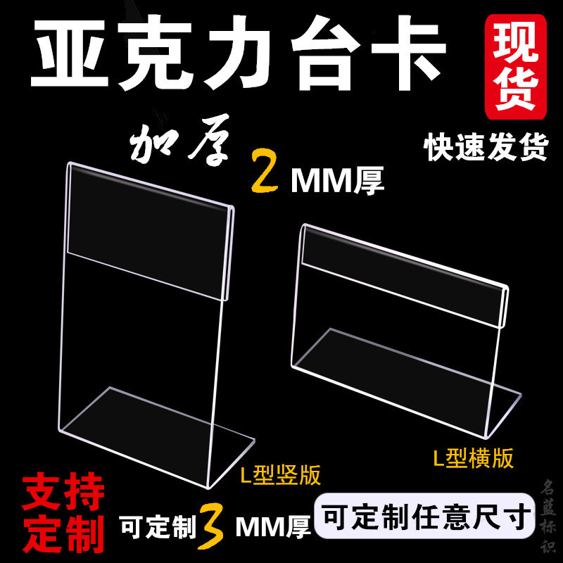 会議台カードテーブルブランドの酒水牌透明アクリルテーブルの価格札の立札のl型の透明な挿し紙の展示札