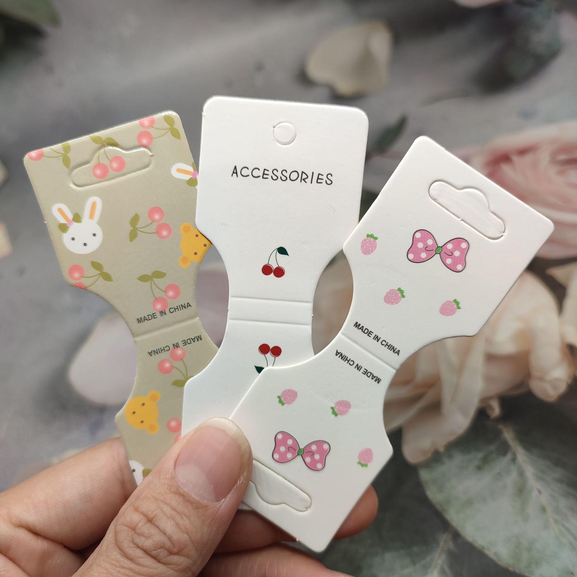約200枚3.5*9.3さくらんぼヘアピン精品店アクセサリー包装ヘアピン吊り下げブランドファッション紙