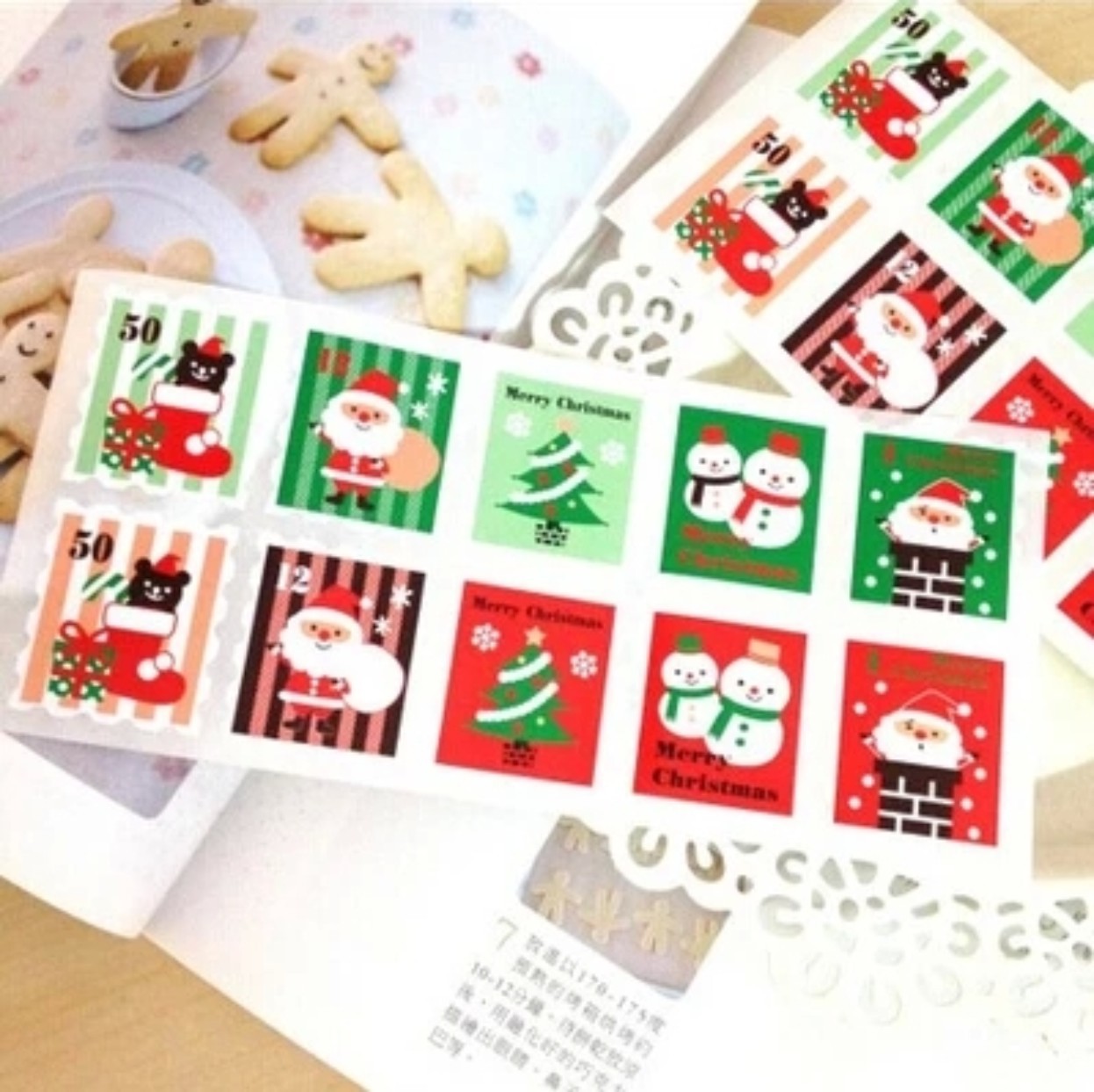 クリスマスシールステッカー 装飾用粘着シール クッキーボックス ケーキボックス カラフルクリスマスステッカー 10枚