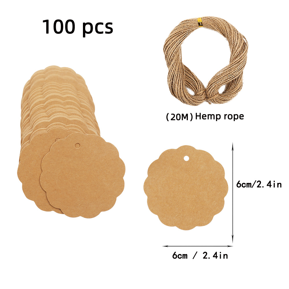 アマゾンクラフト紙タグセット100枚20メートル麻紐6cmブランクカードタグ波円形タグ