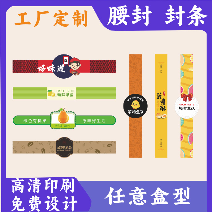 食品ランチボックスのウエストシールは、紙のカバーをカスタマイズして販売しています。