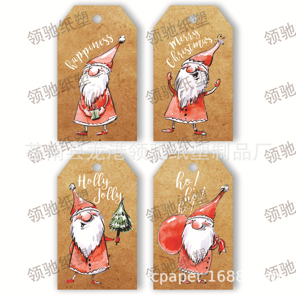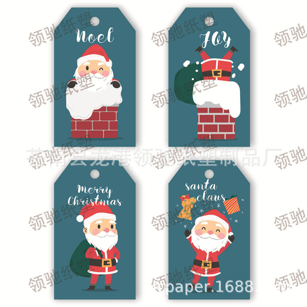 紺色の4種類の漫画サンタクロースラベルクラフト紙吊り札デザートギフトボックスラベル装飾