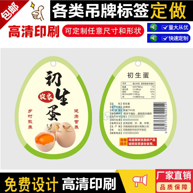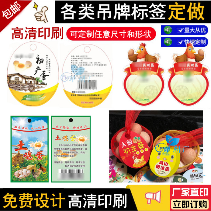農家の土卵吊り札卵初生卵虫草卵ネットポケット吊り札商標ラベル印刷制定