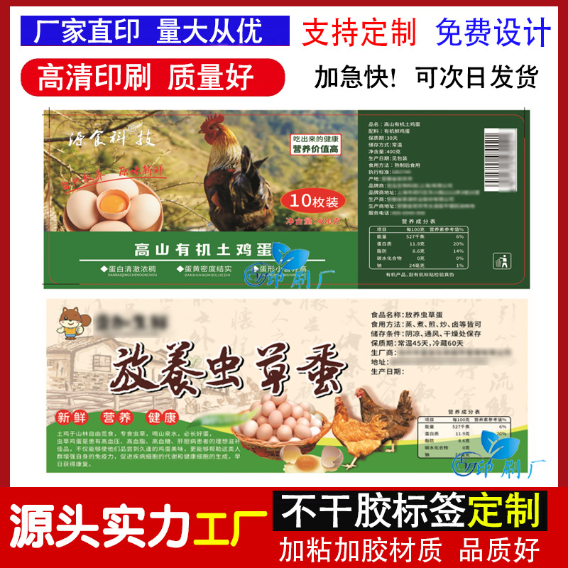 散養虫草鶏ラベルステッカー土卵初生卵商ラベル緑殻烏卵カスタム印刷