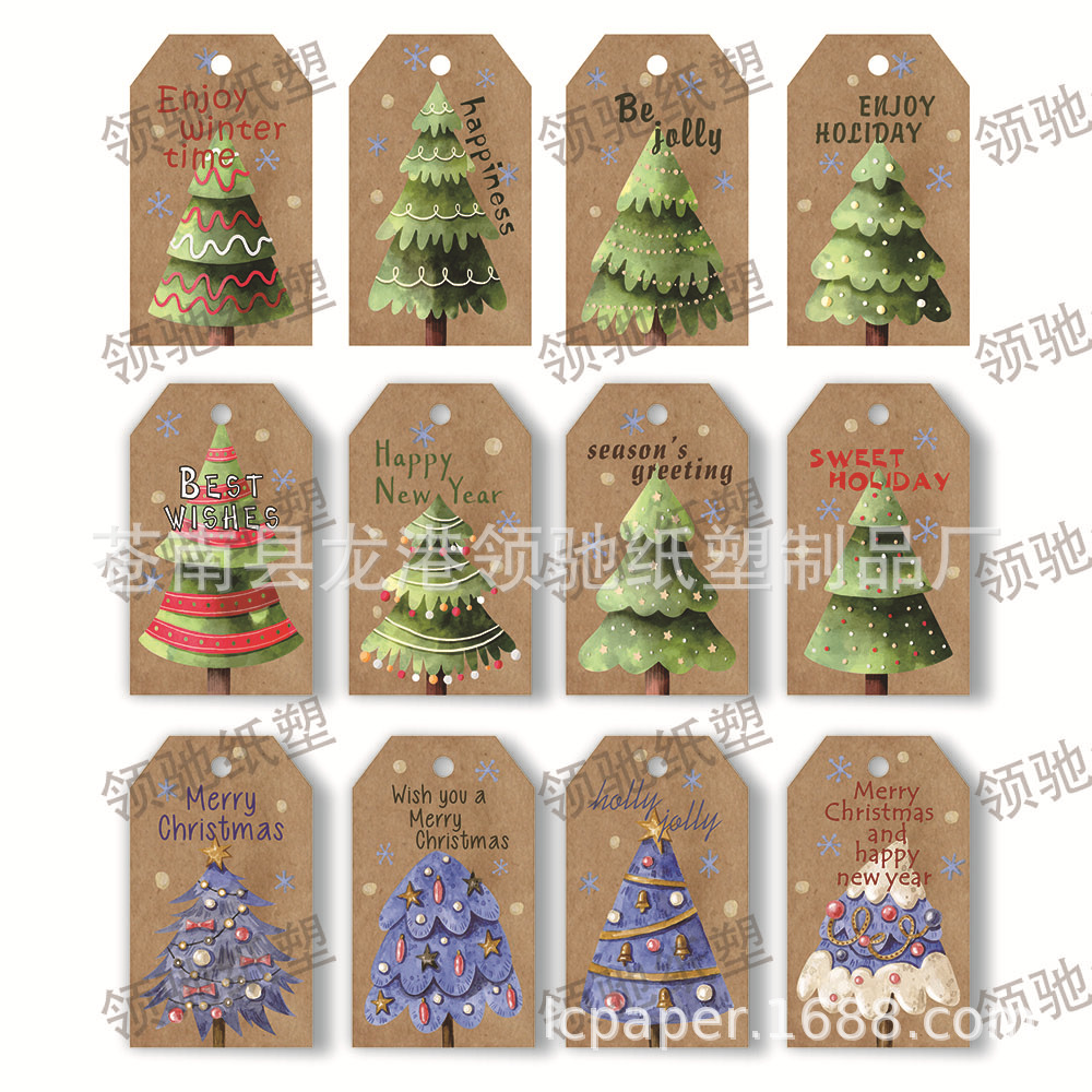 牛革手描きセットクリスマスツリークリスマスタグデザート包装ギフトボックスお土産伝言ラベル装飾