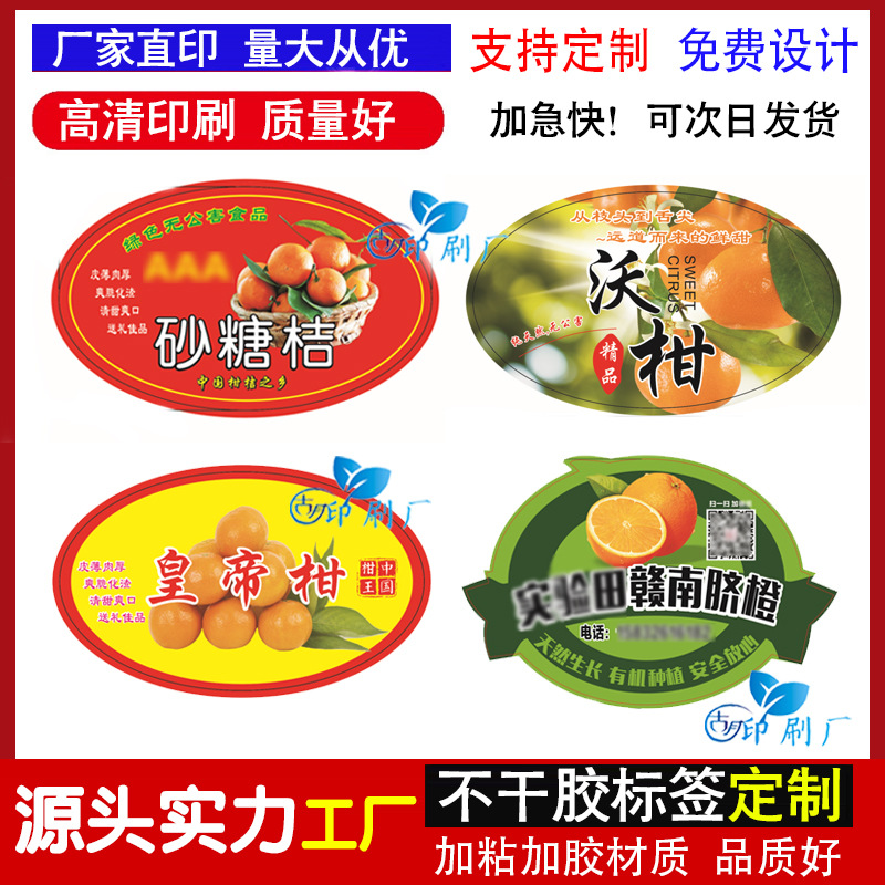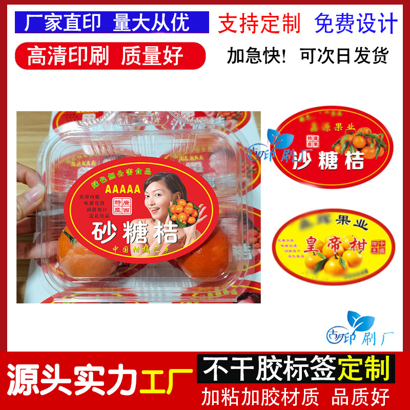 カスタマイズされた砂糖オレンジラベル南臍オレンジ不乾性ラベル銅醜いオレンジ皇帝柑ミカン礼箱包装シール