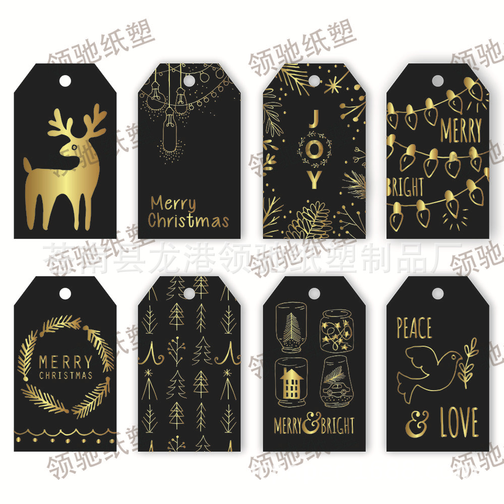黒の新しい箔押しクリスマスラベルクラフト紙吊り札デザート包装ギフトボックスお土産伝言ラベル装飾
