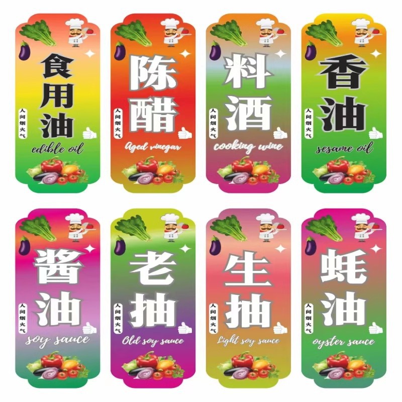 防水は台所のラベルのシールを貼って、醤油酢の調味料の瓶のかわいい油を防ぐことができます。