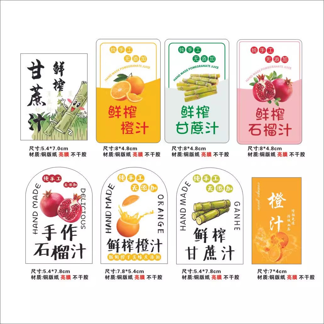 インターネット有名人の搾りたてジュース、ザクロジュース、オレンジジュース、サトウキビジュース、フルーツドリンク、防水ラベルステッカー、ボトルステッカー