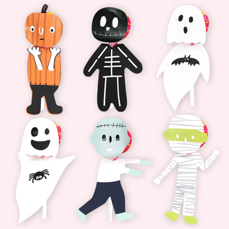 ハロウィーンのアメカード装飾カードかわいい様々な悪役がキャンディーカード6枚/枚をつなぎ合わせた