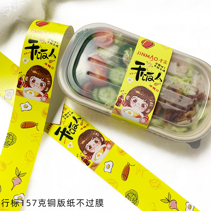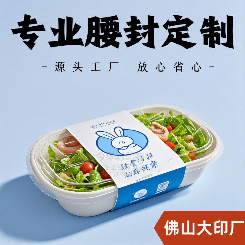 現物ランチボックスのウエストシール箱シール軽食サラダのテイクアウトボックスには、ゴムベルトのロゴシールがついていません