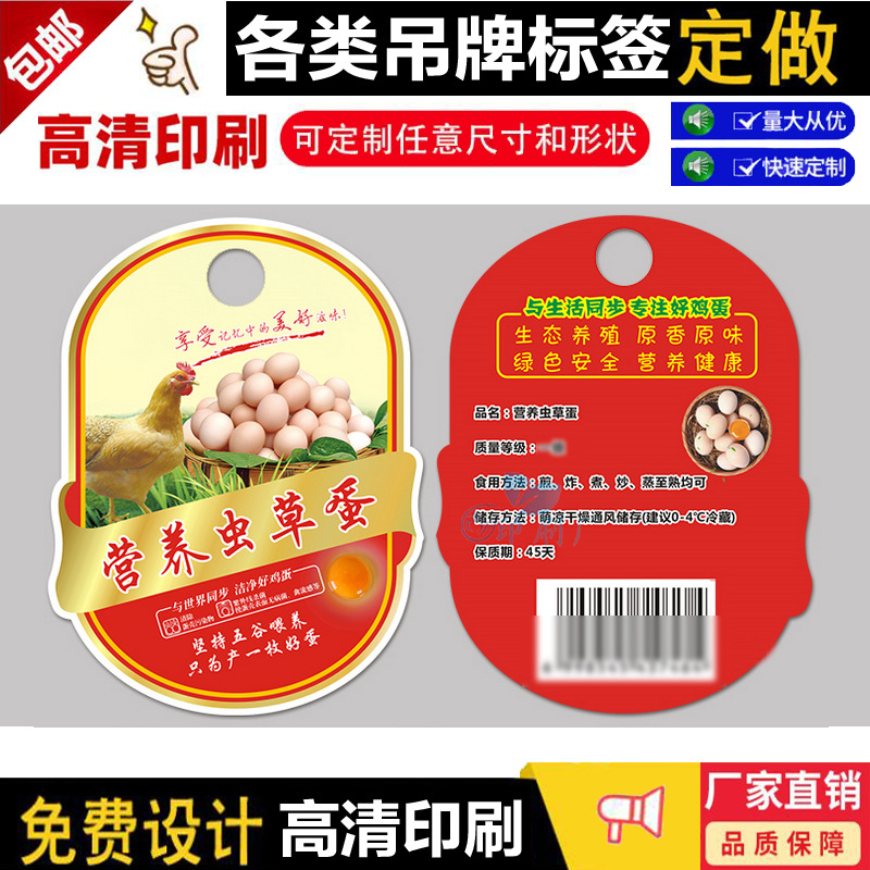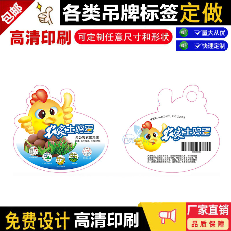 散養土卵吊り札初生卵五穀卵ネットポケット卵不乾性吊り札カードの商標印を作る
