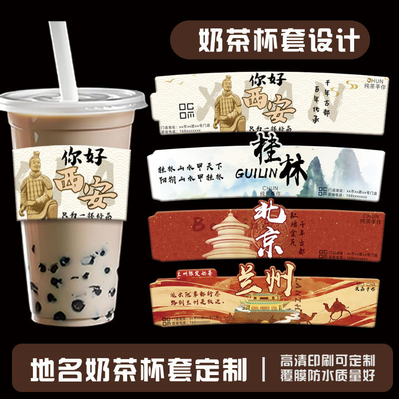地名ミルクティーカップカバーカスタマイズクリエイティブジュースコーヒーロゴインターネット有名人チェックイン都市ランドマーク防水カバーカスタマイズ