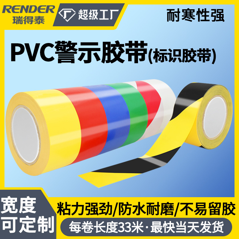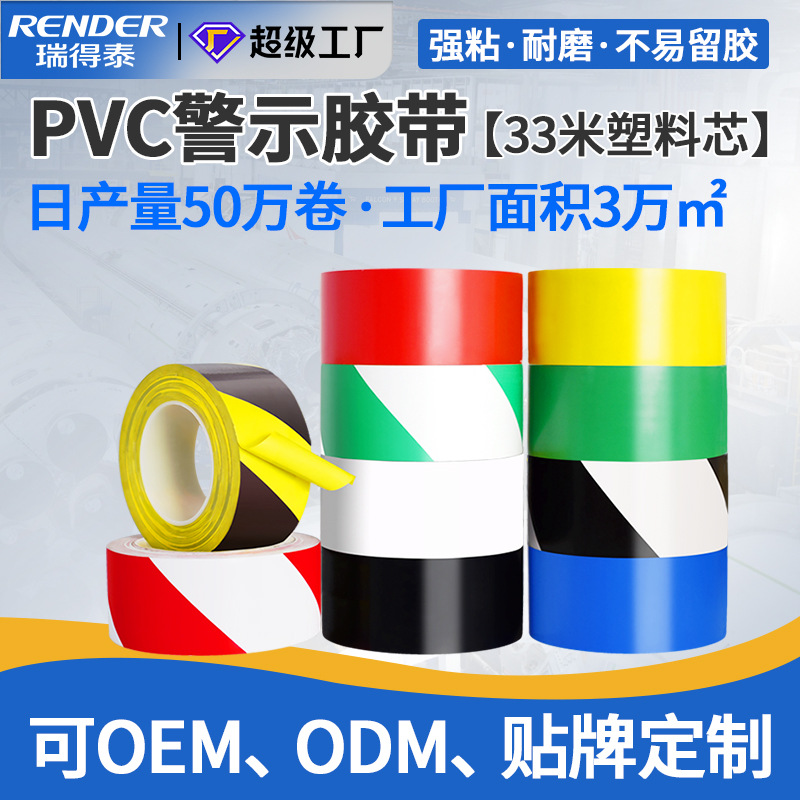 黒黄色PVC警告テープ卸売り33メートル警戒床テープ標識線にシマウマテープを貼る