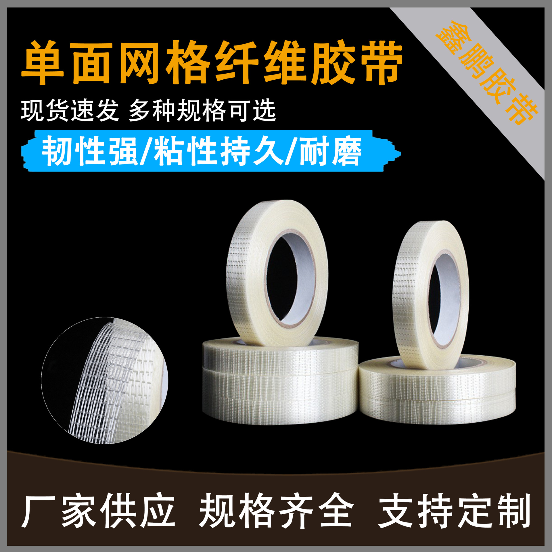 片面メッシュ繊維テープ重量物結束電気金型固定十字強力ガラス布メーカー卸売り