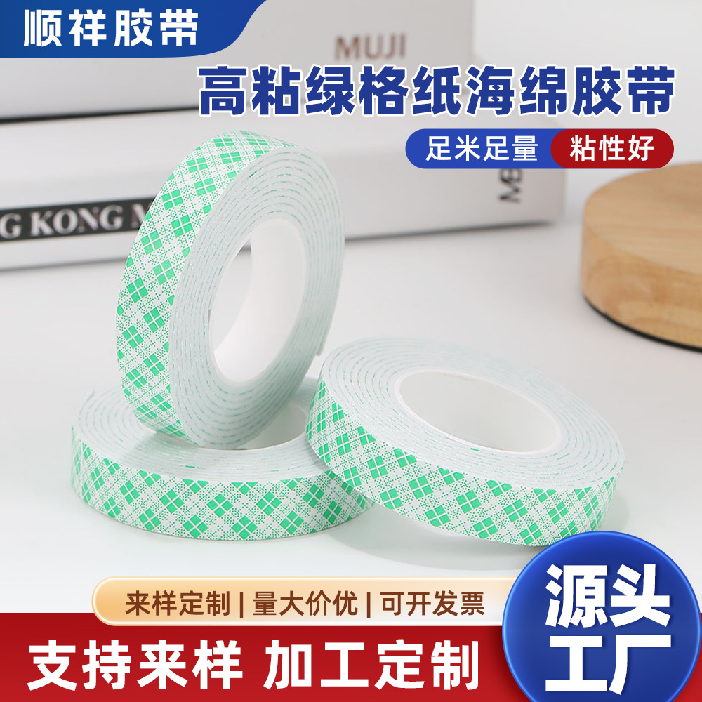 高粘度グリーンチェック柄紙両面粘着スポンジテープ白増粘フォーム春聯高粘度フォーム接着剤大量価格優良