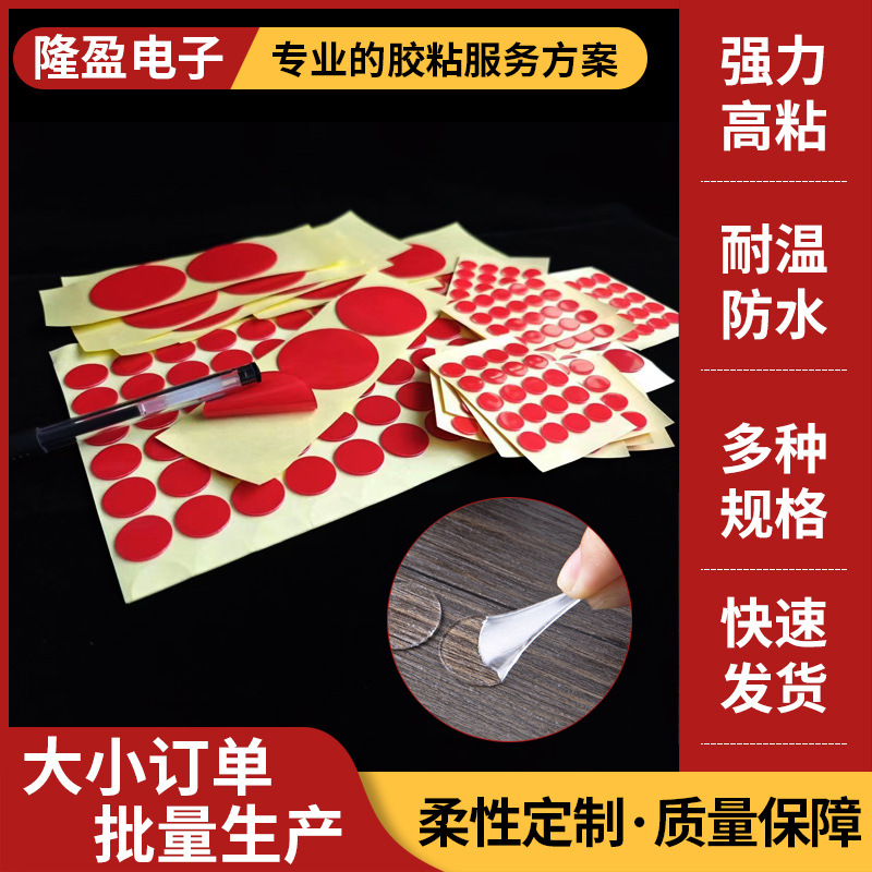 赤いフィルムの丸い高粘度アクリル両面テープ、跡が残らない、跡が残らない、ナノ分注、強力な取り外し可能な粘着テープ、防水