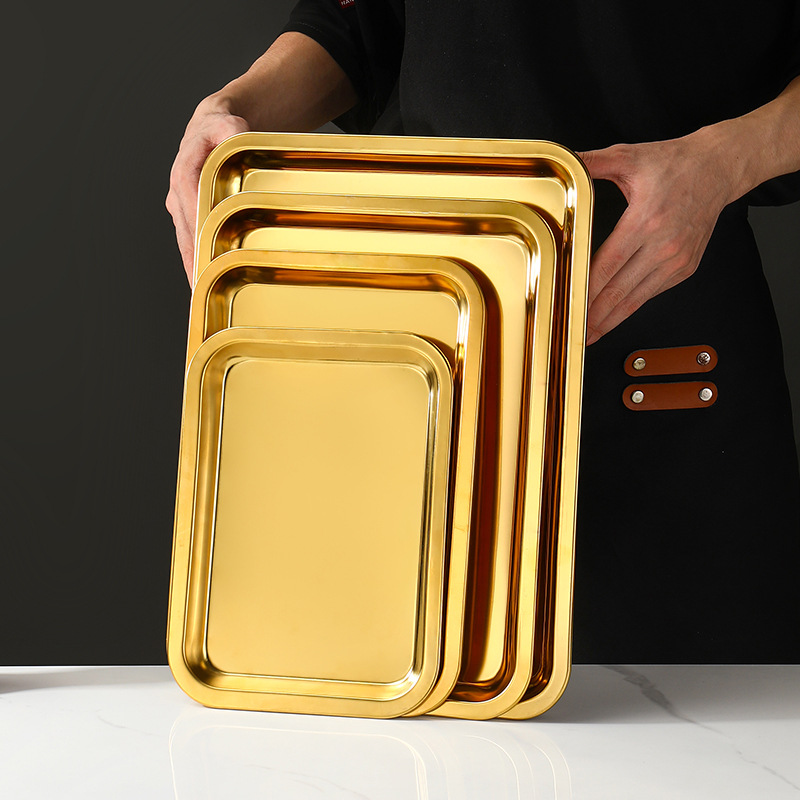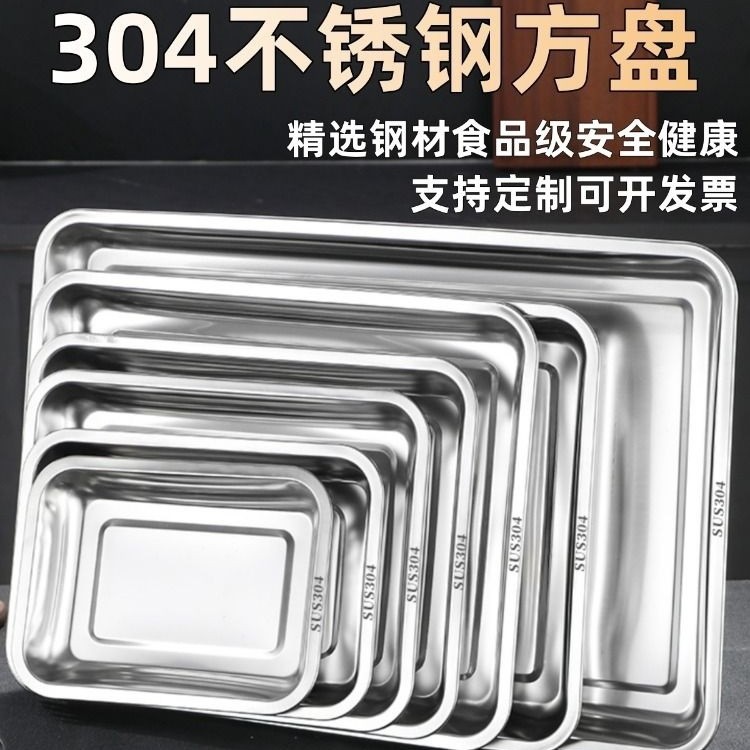 卸売ステンレス鋼プレート長方形トレイバーベキュープレート業務用ディナープレート蒸しライスプレート深い正方形プレート焼き魚プレート家庭用