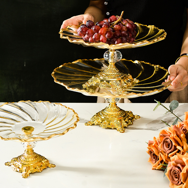 軽くて豪華なフルーツトレイ、背の高いケーキ、スナック、ペストリー、リビングルームのコーヒーテーブル、足付きフルーツトレイ、ガラストレイ