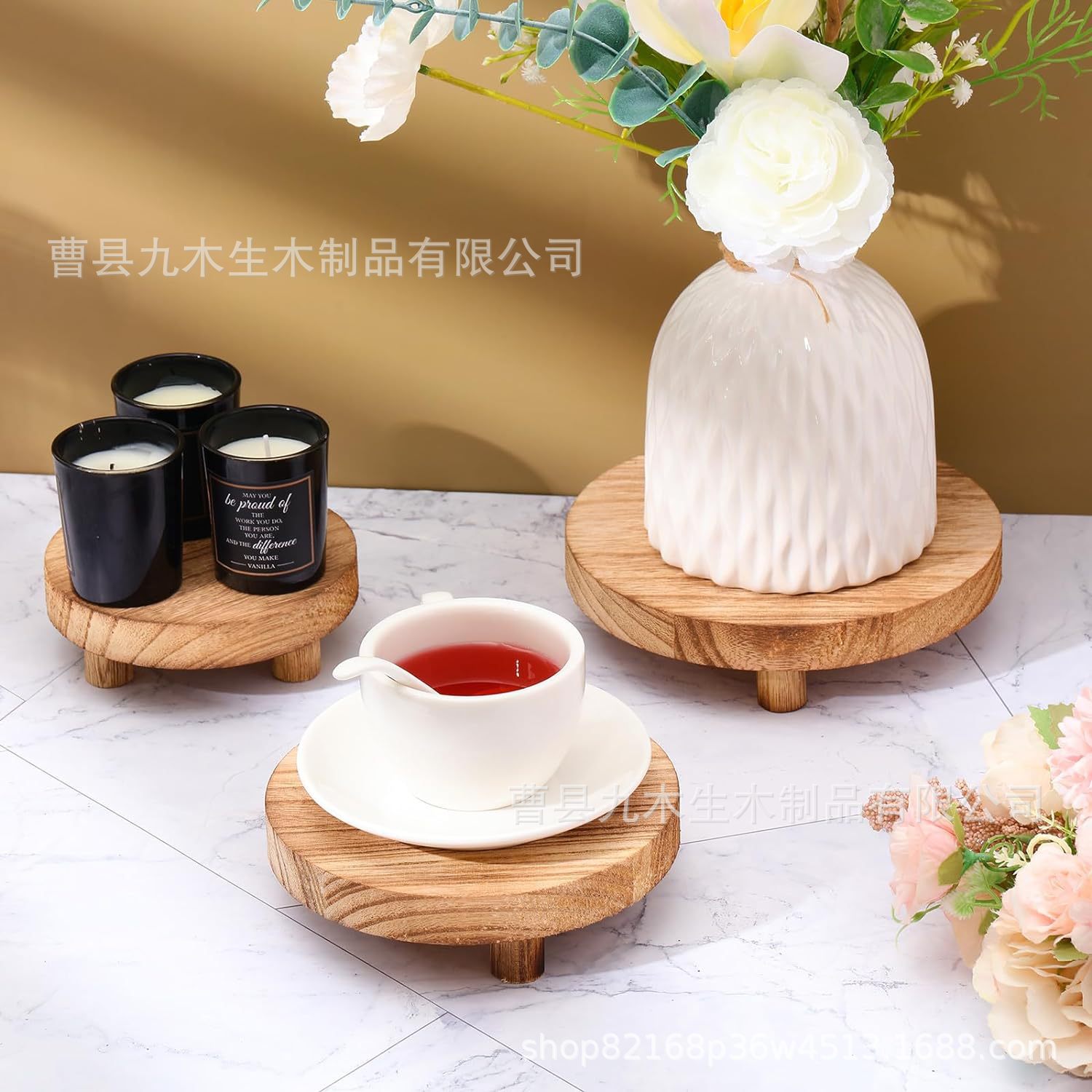 田舎の木製茶色のコーヒーカップのベーススタンド黒胡桃木盛菜トレイ円形植木鉢多肉ベース