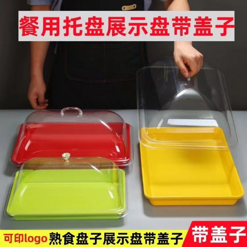 デリサラダディスプレイトレイ 蓋付き 長方形メラミントレイ スタンドトレイ スーパーマーケットディスプレイトレイ 鮮度保持カバー