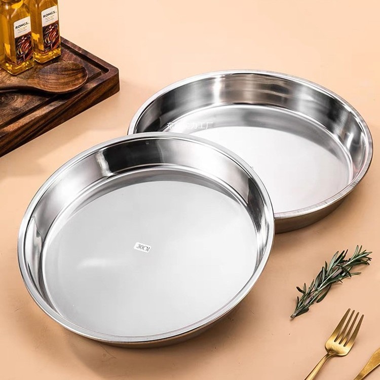 ディスクトレイ クールスキンプレート 家庭用丸皿 304皿 316ステンレス平底大型蒸し皿 浅皿