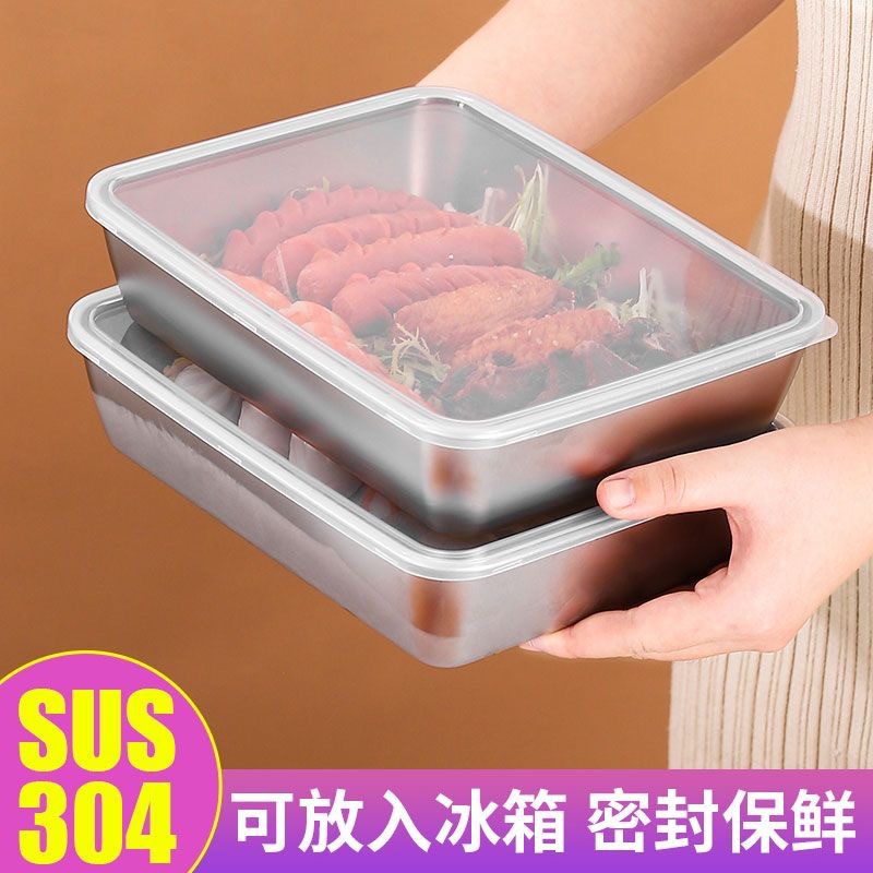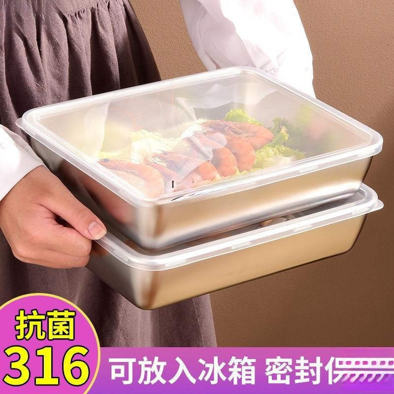 ステンレス製保冷ボックス角皿蓋付き家庭用冷蔵庫収納ボックス皿トレイタオル展クロスボーダー