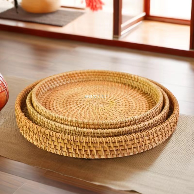 ベトナム籐フルーツバスケット手織り和風パンバスケット蒸しパンバスケットリビングルーム家庭用収納バスケットラウンドトレイ