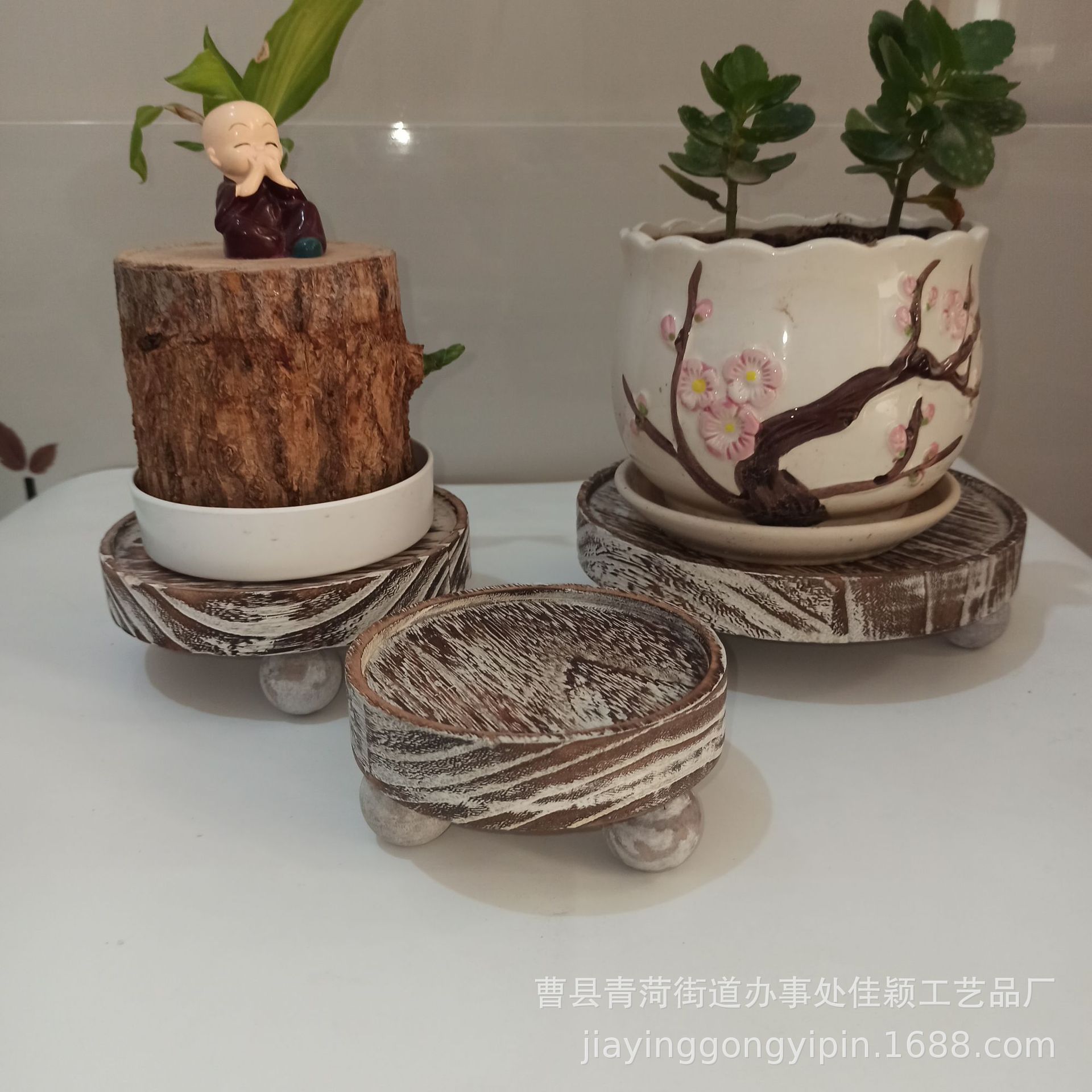 実木レトロ台座宴会花トレーフルーツトレーケーキお菓子置き皿家庭用ピザ皿バーベキュー皿