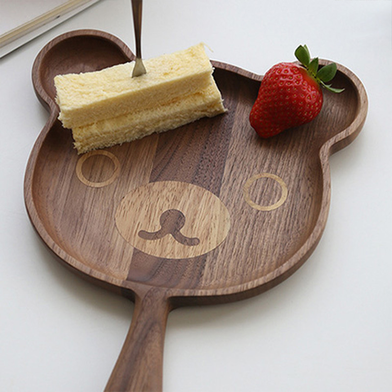 子供のパンダの形の朝食のお菓子のトレーの黒いくるみの木の熊の食事の皿の家庭の食卓の木の食事の皿