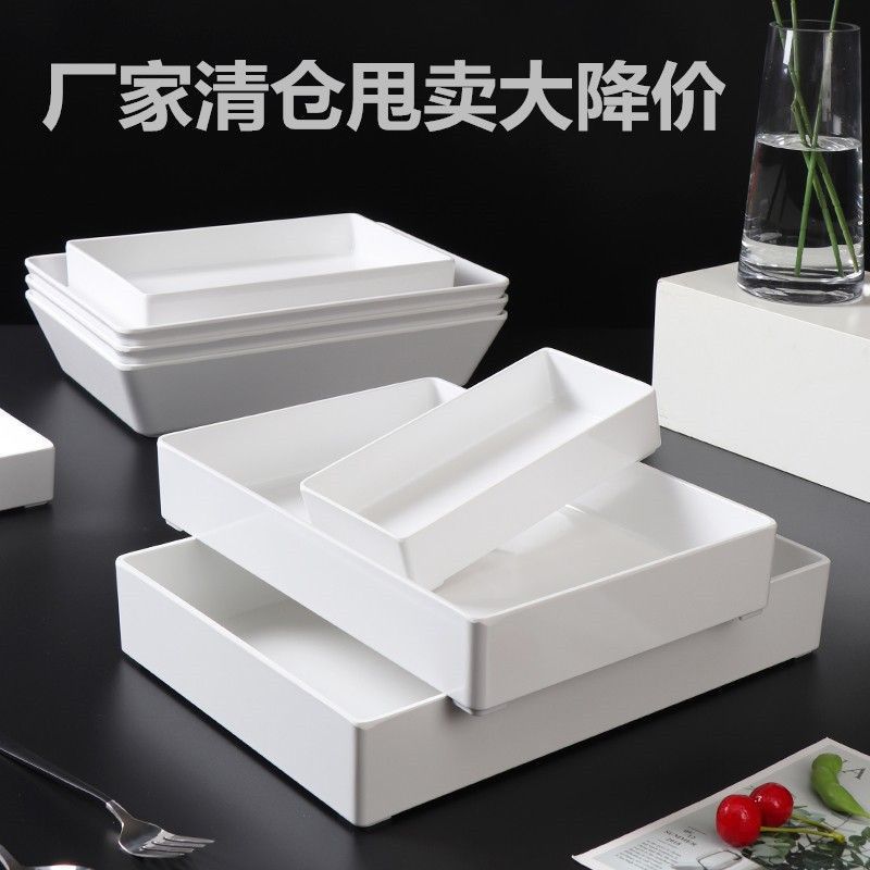ラボトレイメラミン煮込み皿プラスチック調理食品ディスプレイプレートアヒルグッズ白長方形商業煮込み肉プレート