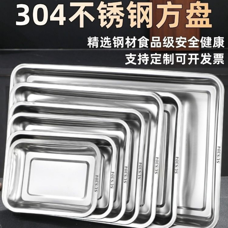 方盘304不锈钢盘子长方形烤鱼盘烧烤盘商用家用加厚餐盘菜盘托盘