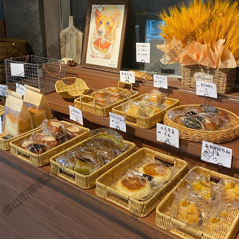✅ 模造籐トレイ パンバスケット 手織りコーヒー ホテル商業トレイ 双耳スナック キャンプスナックトレイ