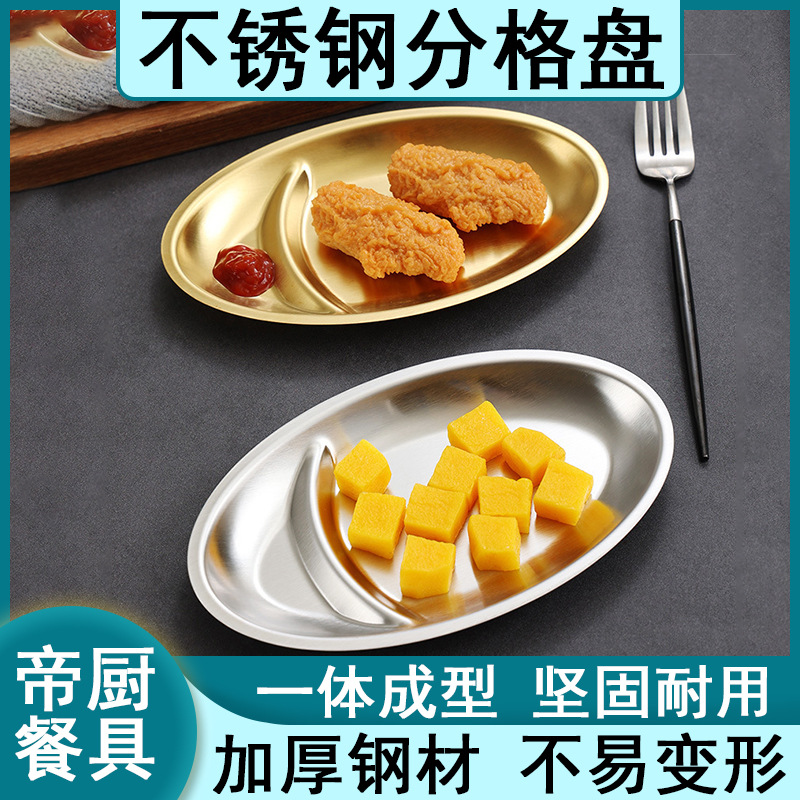 韓国ステンレススナックプレートオーバルフライドチキンフライドポテトプレートバーktv分割スナックプレートゴールデンスナックプレート