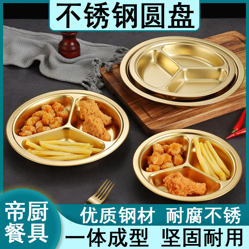 ゴールデン 304 ステンレス鋼ラウンド子供用ディナープレート幼稚園ベビープレートランチボックスレストラン従業員学生分割プレート