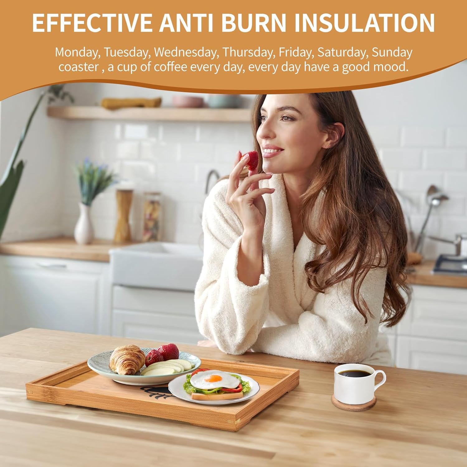 ハンドル付き木製トレイ トレイ 装飾的な耐久性のあるディナートレイ 朝食コーヒー用 おかずトレイ 鍋レストラン用