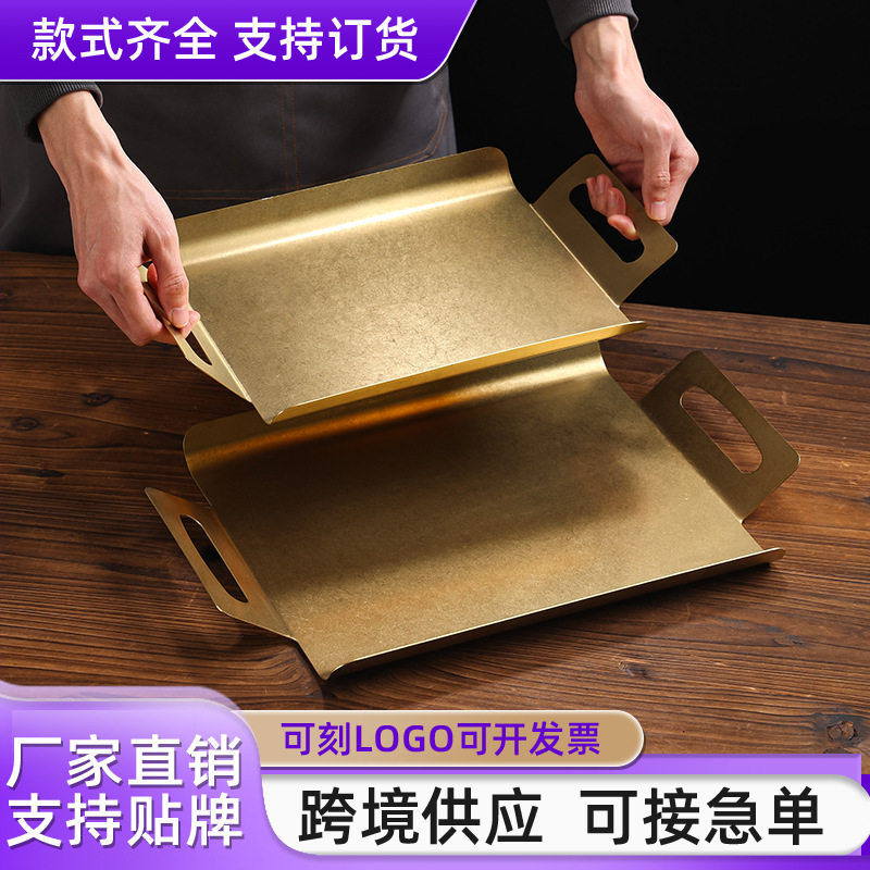 北欧長方形トレイ商業ゴールドプレート双耳平底大型ペストリーデザートプレート厚みのあるディナープレート