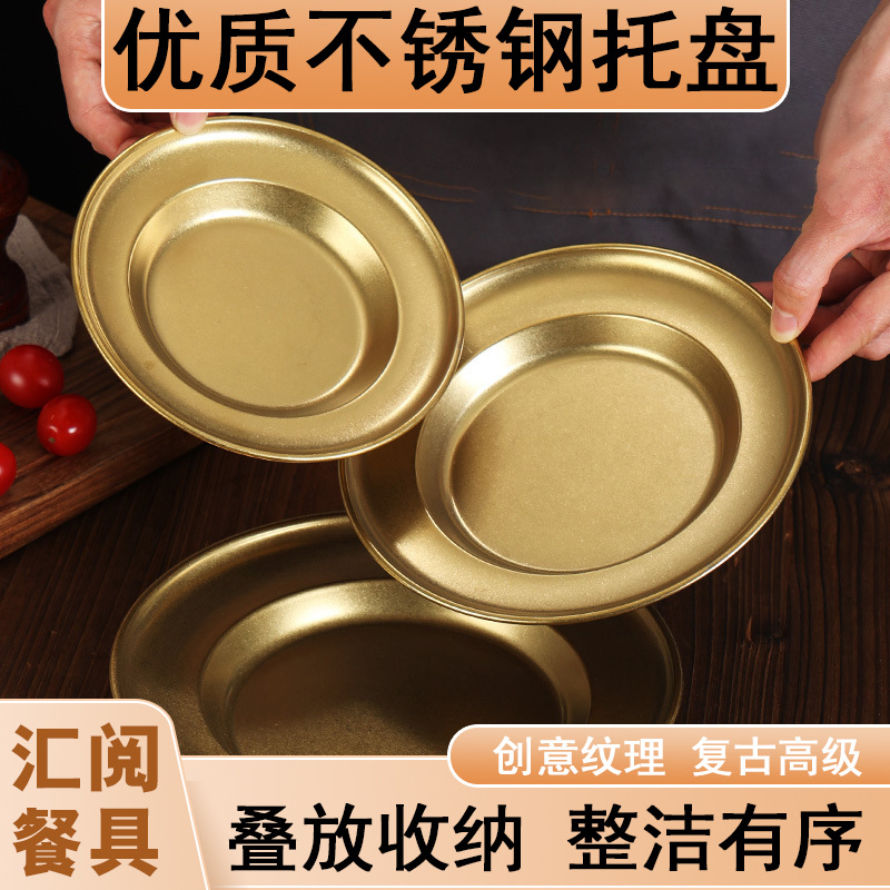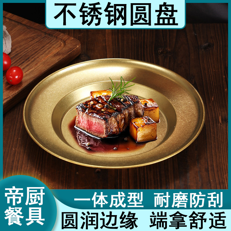 レトロステンレス皿円盤果物皿高級感軽贅沢創意ホテル業務用食事皿トレー料理皿