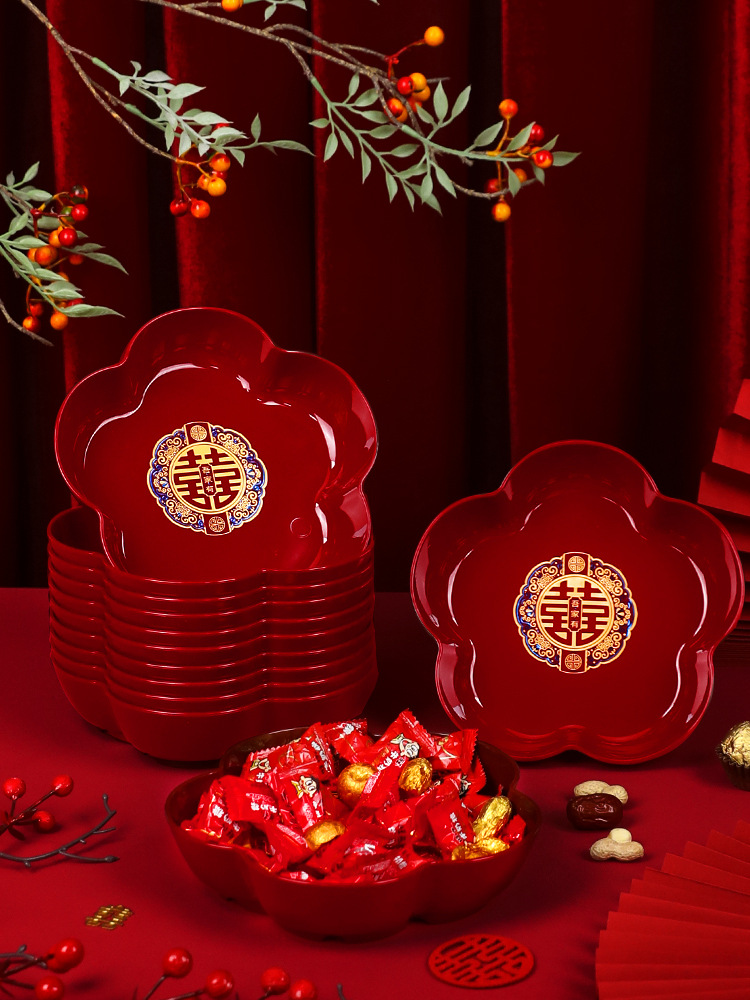 結婚喜字果盤婚約用品大全2024新型結婚式赤トレー披露宴喜糖盤乾果盤