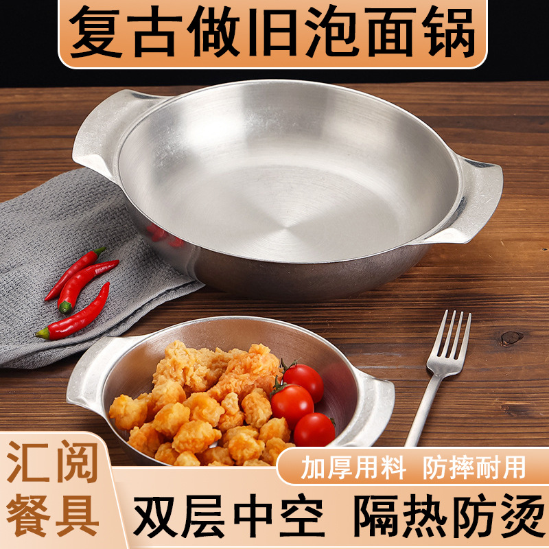 レトロステンレス鋼古い双耳インスタントラーメンポット小型鍋ラーメンポット業務用ヌードルポット焼き飯プレートドライポットベーキングパン
