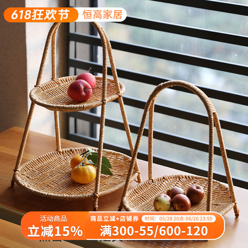 シンプルでクリエイティブな多層アフタヌーンティートレイ模造籐家庭用スナックトレイキャンディートレイバスケットプラスチックラウンド