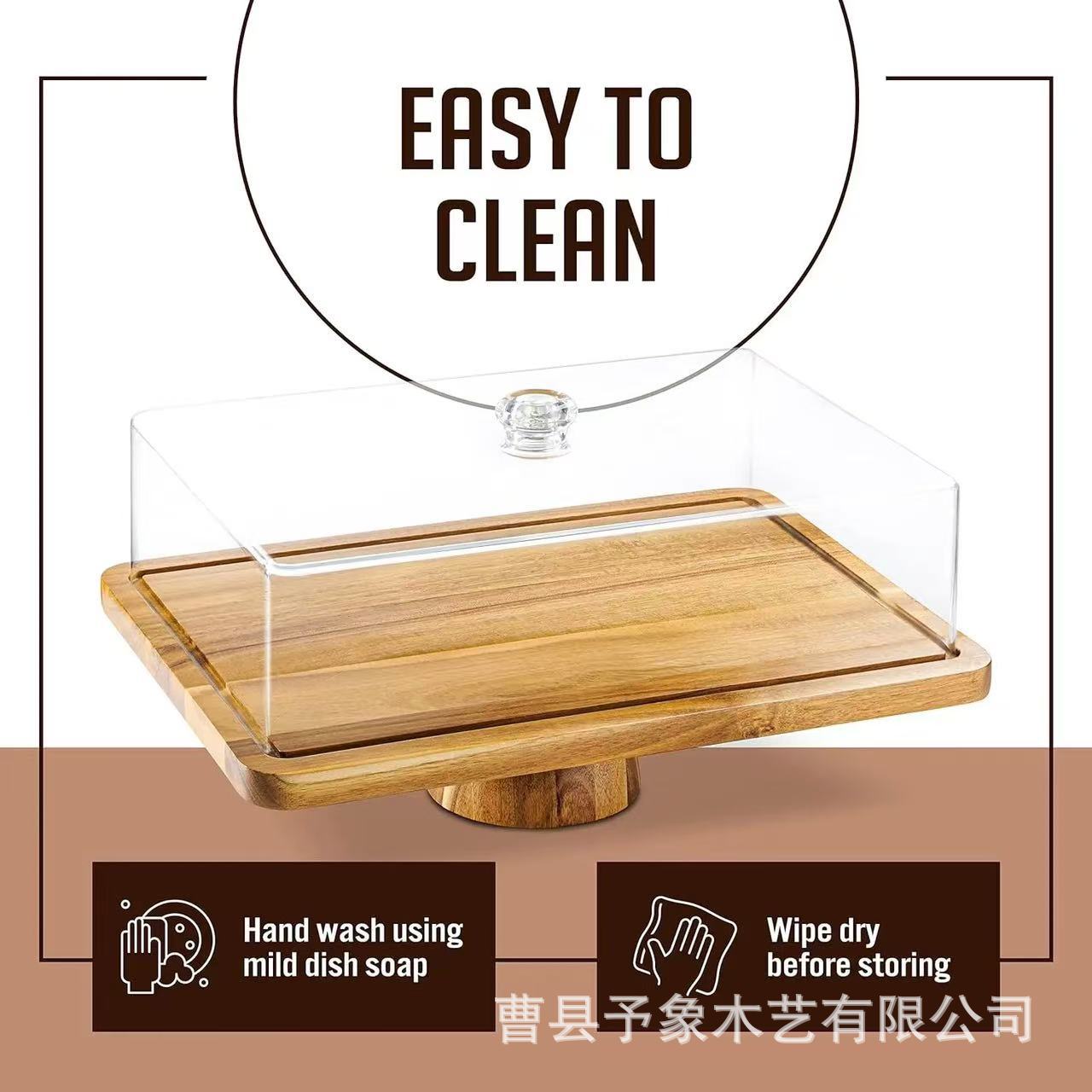 アカシアの木のケーキはトレーの家庭用の高い足の両用の果物のパンの皿を展示します。
