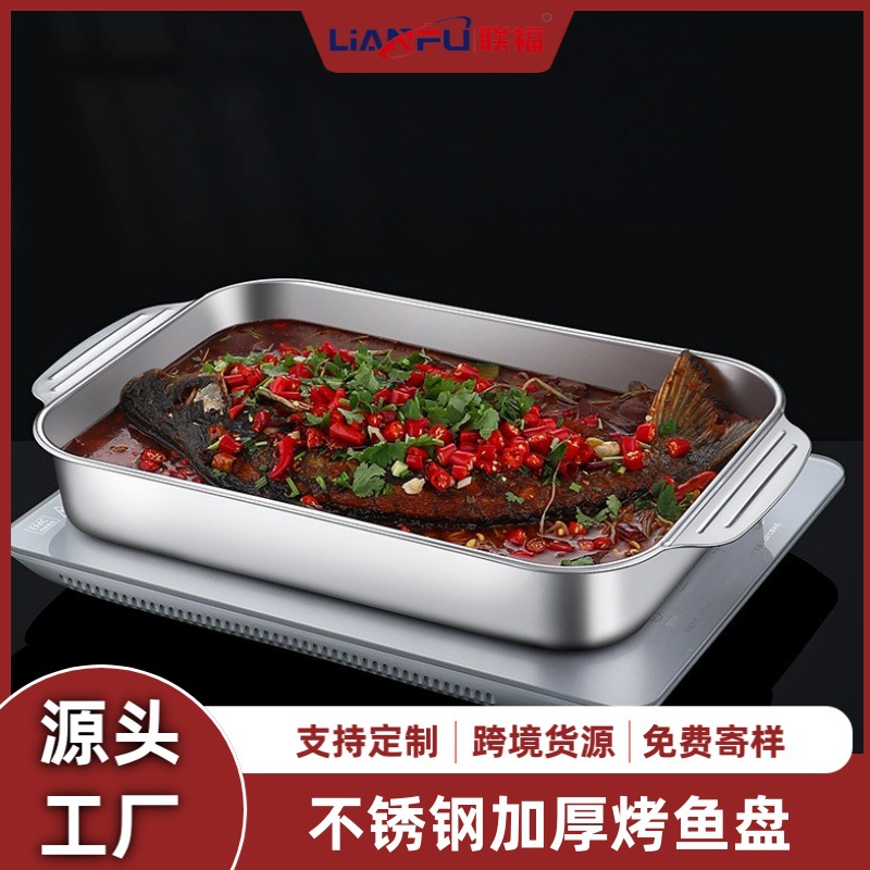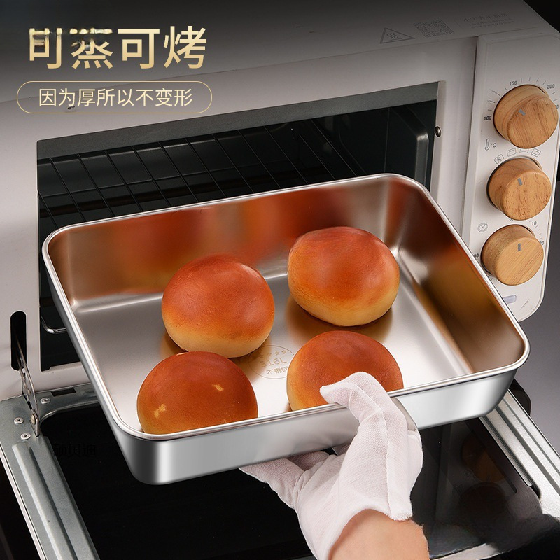 ステンレス盤長方形家庭用平角盤深盤ハンドル付きオーブントレイ商用焼き魚皿大サイズ