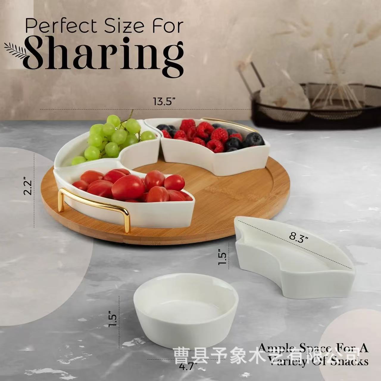 現物竹製円形分格トレー家庭赤ちゃん朝食補助トレーテーブルナッツ果物装飾トレー