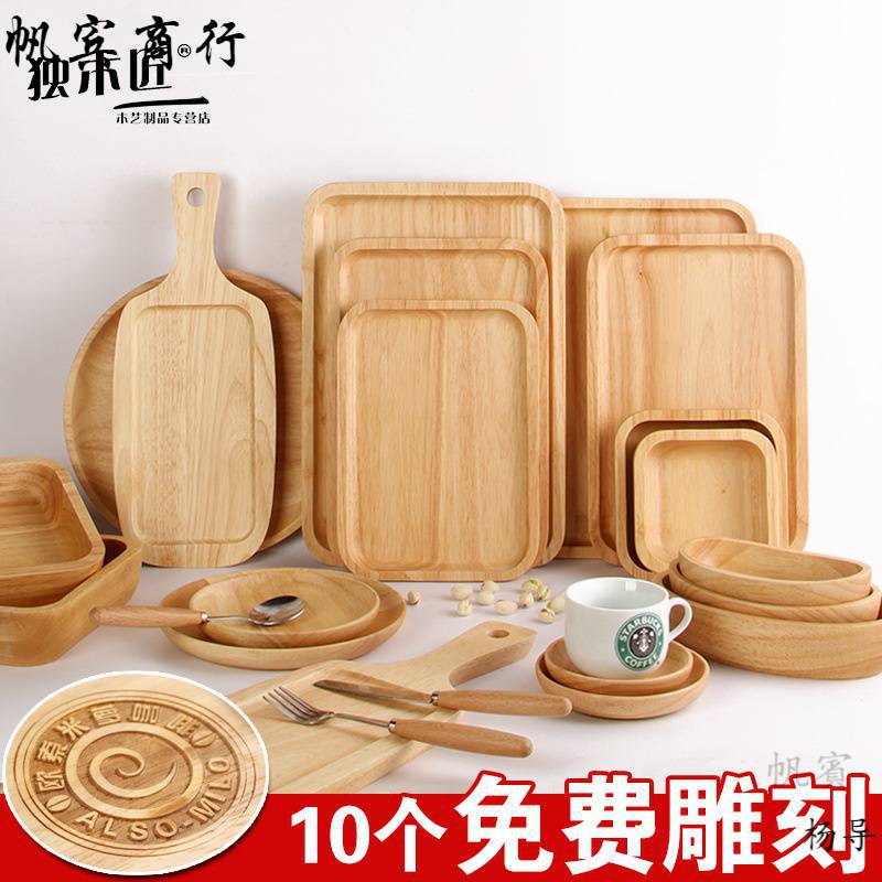 日本式の木のトレーの長方形の丸い皿の家庭用のコップのホテルの木製のパンのケーキの果物の木の皿