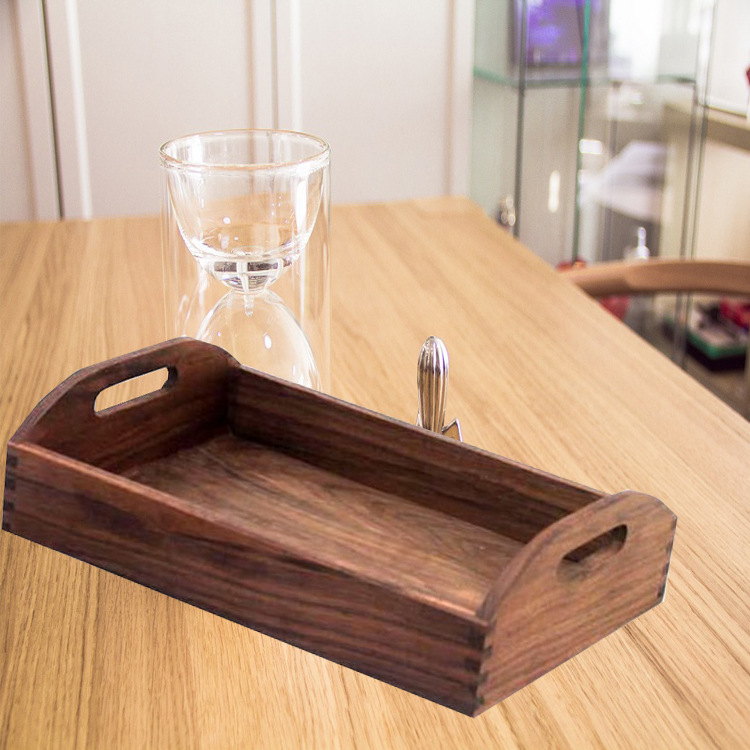 無垢材日本茶カップトレイ商業コーヒースナックトレイクルミ長方形トレイ家庭用木製ティートレイ